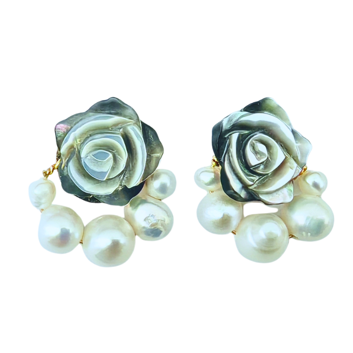 偏光の美しいシェル素材で仕立てたローズモチーフに、